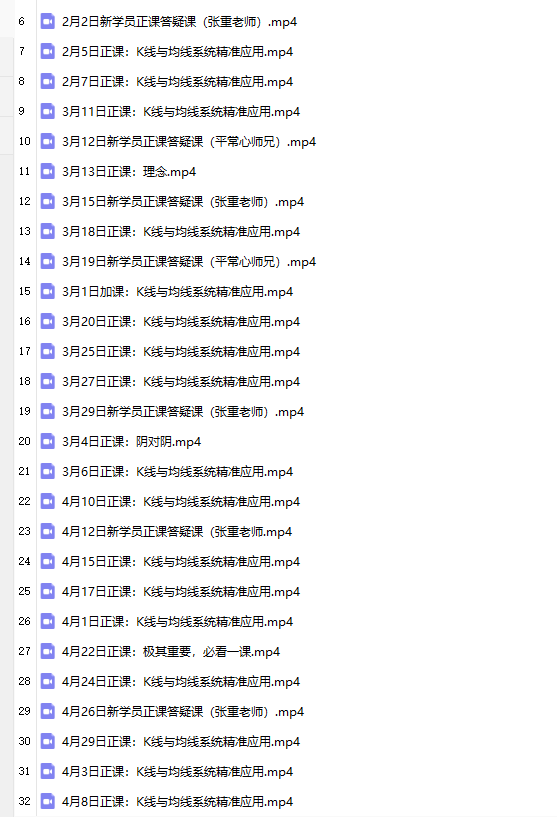• 张重核心实战模式之-K线与均线系统精准应用第二季技术课13集+直播课32集