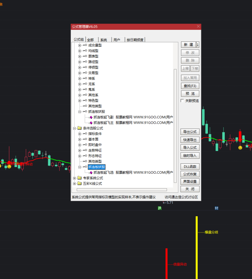 2,打开通达信,按CTRL+F打开公式管理器点击“导入”按钮“,